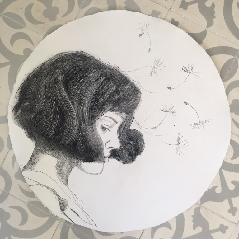 Punta seca / Papel artesano indio, 56×56 cm